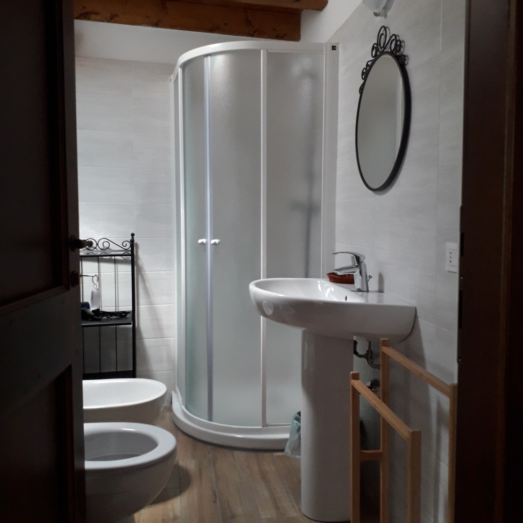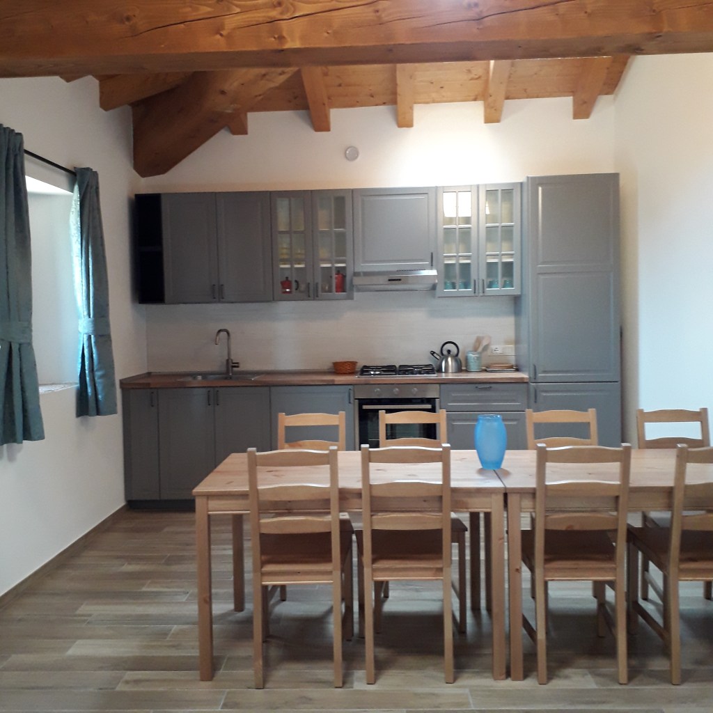 Appartamento di grandi dimensioni, con entrata indipendente, in edificio del 1500. Composto da ampio soggiorno con cucina attrezzata, divano letto (140×200) e tv, disimpegno con angolo lettura, 1 camera singola, 2 camere matrimoniali, 1 camera con letto matrimoniale e letto singolo. Tutte le stanze sono con bagno. Dotazione: tv, phon, riscaldamento, ferro da stiro, biancheria da letto, da bagno e da cucina, materiale pulizie. Ampi spazi esterni e parcheggio. Per 8/9 persone.