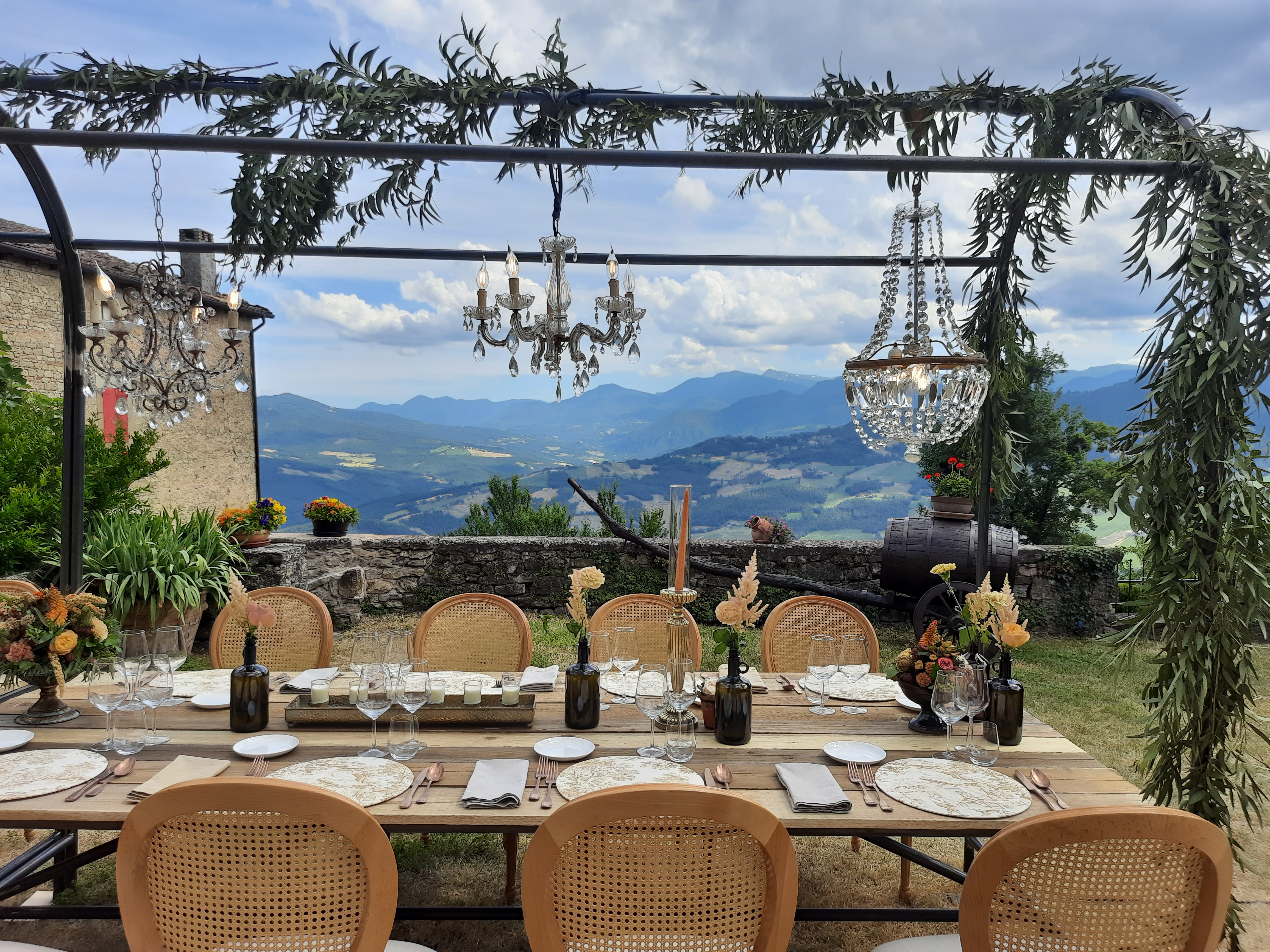 Cena nel parcoCena al tramonto con vista sull’AppenninoTavoli imperiali nella corteCena con vista su Corno alle Scale e Monte CimoneVista sul Corno alle ScaleDegustazione sigari, cioccolato, rum…Vista sul CimonePer BallarePer ballarePranzo nella vecchia Acetaia